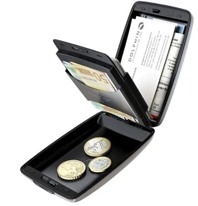 - ✅ Nossa Carteira Slim Protect® é a primeira carteira de alumínio com compartimentos integrados para cartões e moedas, com um sistema de armazenamento patenteado para segurança e organização.